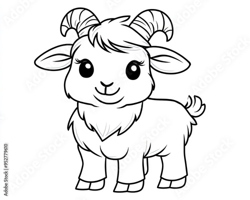 Cute minimalist black and white goat illustration for children's coloring book with simple design on white background
