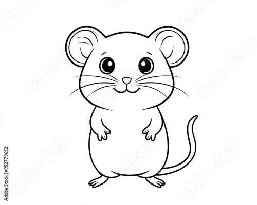 Cute kawaii rat illustration in minimalist style on white background for children's coloring book