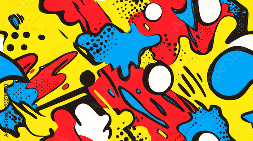 Seamless whimsical and playful design inspired by comic book art with vibrant colors