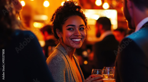 Group of friends enjoying drinks and laughter at a lively social gathering
