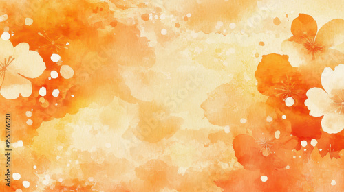 Orange Japanese floral pattern watercolor background with abstract design