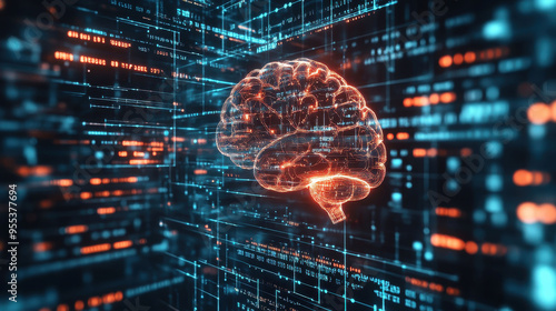 Futuristic digital brain interface in a virtual data environment
