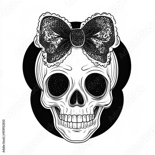 Gothic style skull with black lace bow on top for dark art