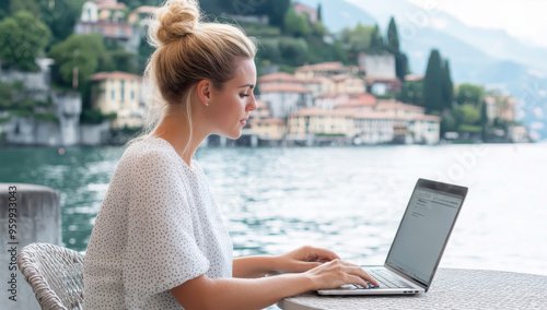 Smiling woman opens outdoor mailbox to receive a parcel in a suburban neighborhood on a sunny day