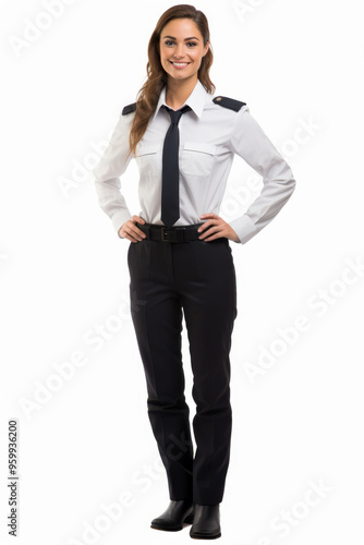 Full body shot of friendly female zookeeper in professional uniform standing confidently