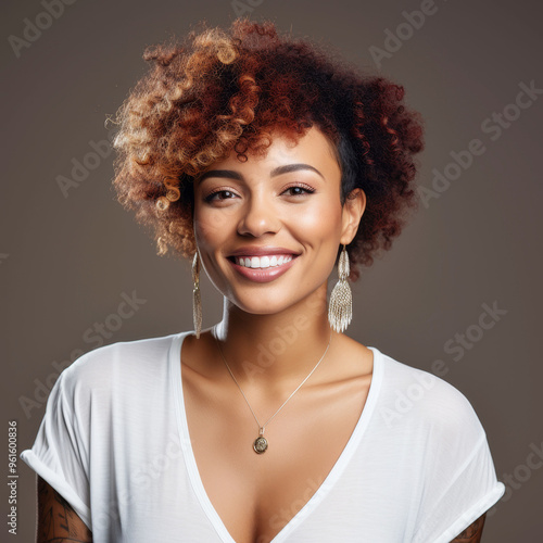 Vibrant portrait of a smiling African-American teenage girl against a red background