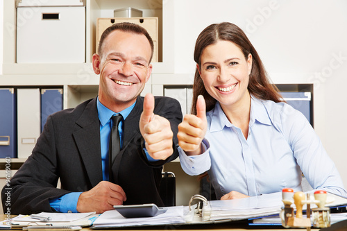 Bürokaufleute halten Daumen hoch