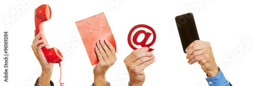 Hände halten Telefon, Brief und Email