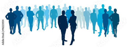 Geschäftsmann und Geschäftsfrau vor Business Team