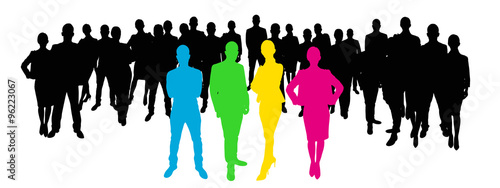 Panorama aus Silhouetten von Geschäftsleuten vor bunten Business Portraits