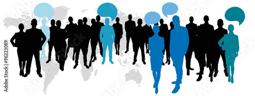 Geschäftsführer und Mitarbeiter mit Sprechblasen