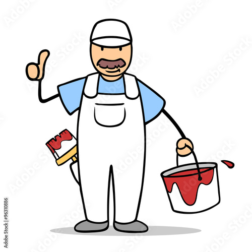 Maler mit Pinsel hält Sparschwein als sparen Konzept