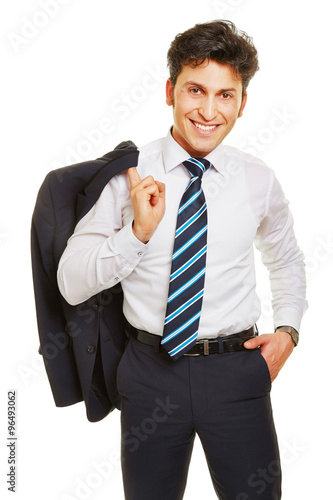 Lächelnder Geschäftsmann mit Jackett über der Schulter