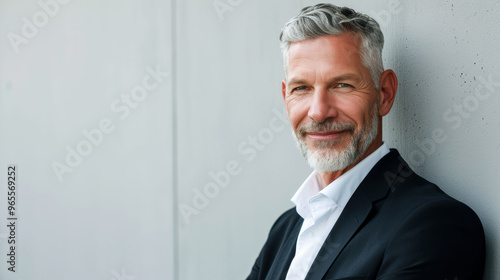 Confident Italian brand manager in his 40s with a charismatic smile in a business setting