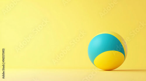 Vibrant 3D beach ball on a minimalist yellow background conveying summer and playfulness in a creative and dynamic composition with Brazilian inspired colors.