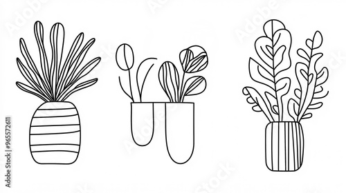 Hand drawn abstract minimal element vector illustration featuring mid-century plant designs with elegant lines in black and white