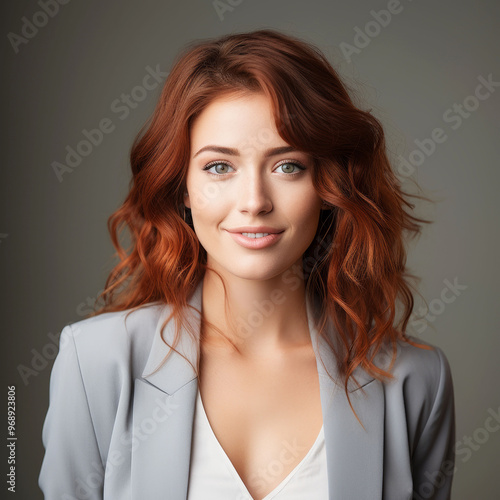 Confident young female entrepreneur in a professional black blazer, showcasing determination and focus in a modern business setting.