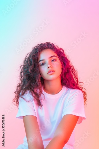 Beautiful Brazilian teen in vibrant pastel colors skin care portrait