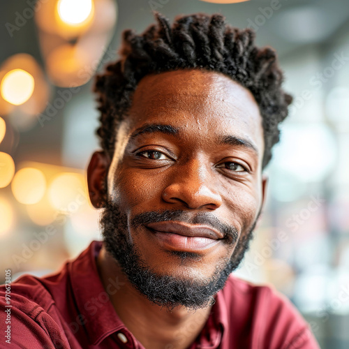 Close-up of a smiling Middle-Eastern professional in a cozy workplace