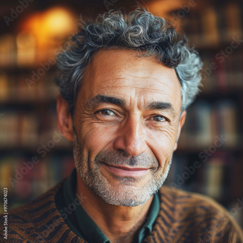 Close-up of a smiling Middle-Eastern professional in a cozy workplace