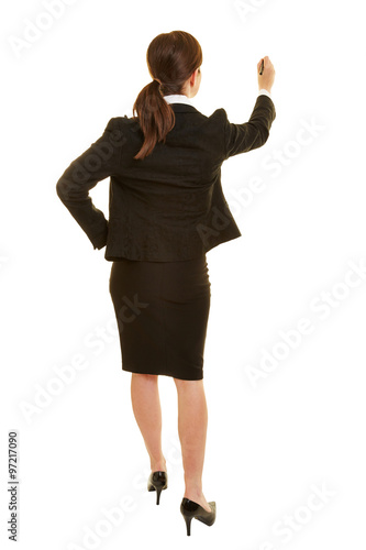 Geschäftsfrau schiebt imaginäre Wand zur Seite