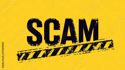 Yellow warning background with the word scam emphasized in bold black for cautionary use