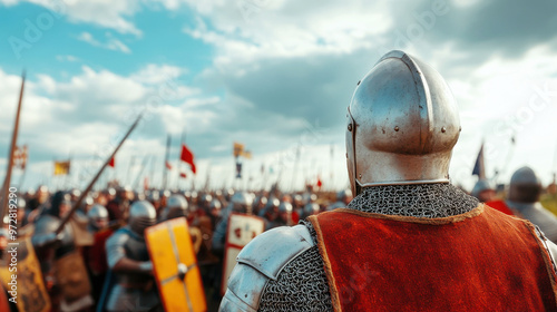 Armored warriors engaged in a fierce medieval battle under a stormy sky, showcasing the intensity of historical warfare and bravery on the battlefield.