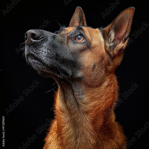 Majestic Belgian Malinois Dog Portrait with Intense Gaze in Studio