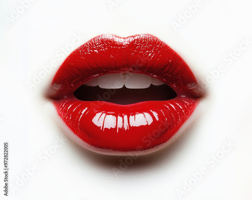 Vibrant red lips on a pure white background exuding sensuality and elegance in a vivid close-up image
