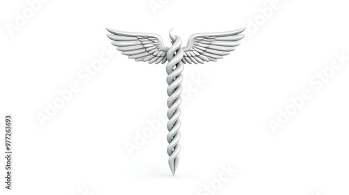 Elegant 3D rendering of the Caduceus medical symbol with intertwined serpents and wings representing healing and medicine