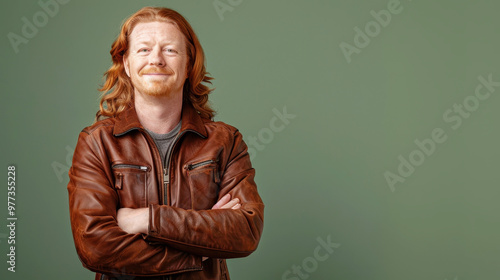 Radiant Latino man, 50s, with silver wavy hair, green studio
