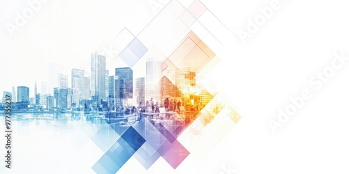 Dynamic collage of cityscape and business elements with vibrant colors