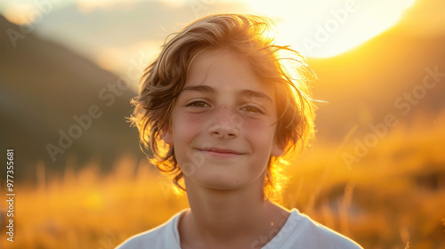 Portrait of a joyful Indian boy with a radiant smile at sunset