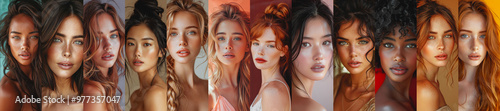Extreme close-up of a beautiful radiant woman with freckles and captivating blue eyes