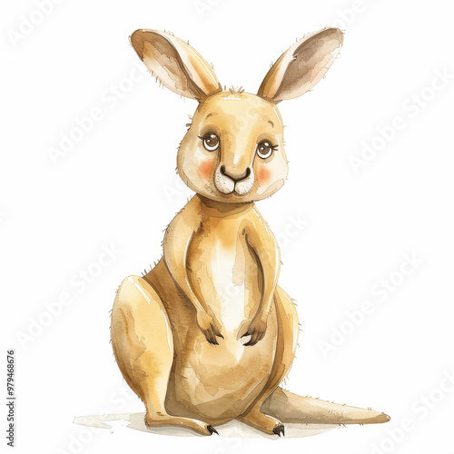 Cute watercolor kangaroo illustration perfect for children's room or nursery decor