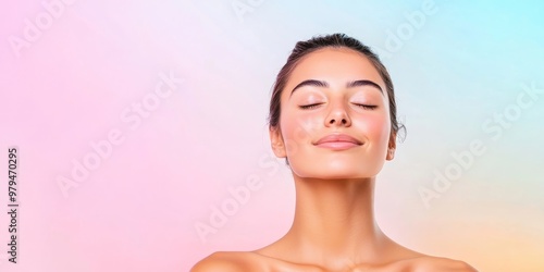 Portrait of a serene woman embracing natural beauty with flawless skin