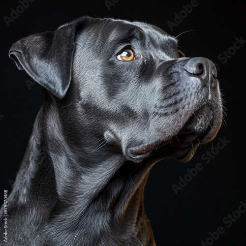 Majestic Cane Corso dog portrait against a warm, blurred background showcasing strength and alertness
