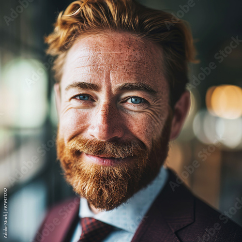 Confident mature Caucasian businessman in his 50s with short gray hair wearing a suit and tie against a neutral background