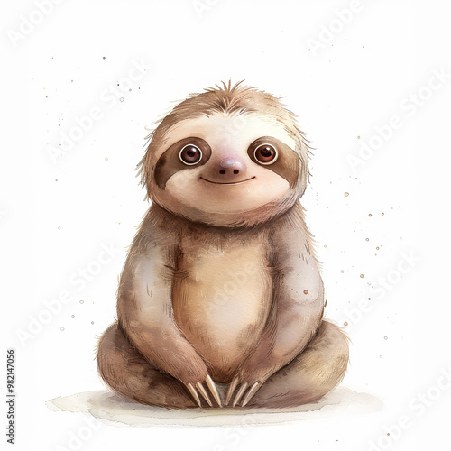 Minimalist full-body cartoonish funny sloth illustration isolated on white background