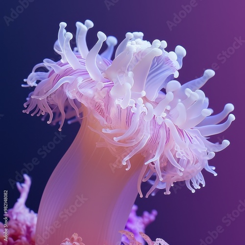Stunning studio portrait of a sea anemone showcasing vibrant colors and delicate tentacles