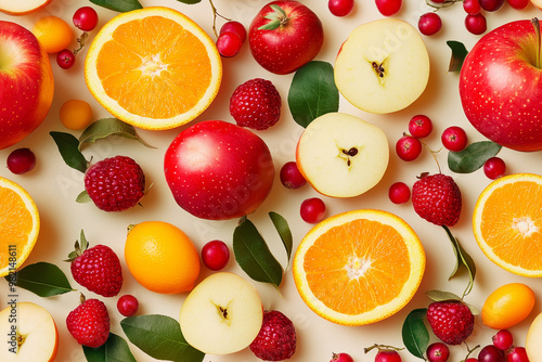 Seamless fruity pattern with vibrant citrus and berry illustrations