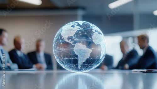 Corporate meeting with professionals discussing strategy in a modern office setting
