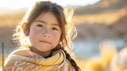 Portrait of a young Bolivian girl aged five, radiating warmth and innocence