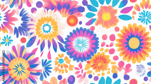 Vibrant circular motifs in seamless colorful floral pattern design