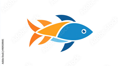 Abstract fish logo featuring dynamic blue and orange arrows signifying speed and movement in a unique design concept