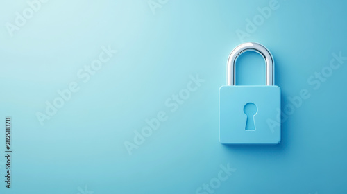Blue padlock on a minimalistic light blue background symbolizing cybersecurity and protection.