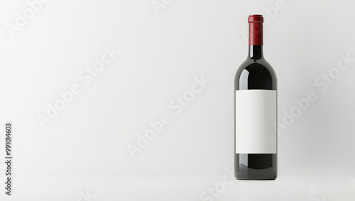 A bottle of red wine with a blank label isolated on a white background, perfect for branding and marketing concepts in the wine industry.