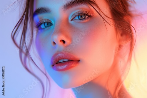 Radiant Russian woman with pastel colors in a beauty skincare portrait