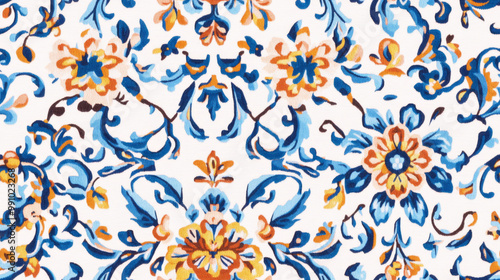 Ornate floral pattern with symmetrical design and vibrant colors