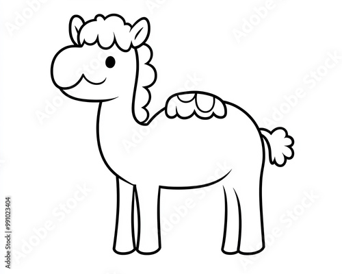 Cute kawaii camel in minimalist style illustration for children's coloring book on a white background